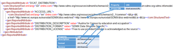 The StatDCAT-AP specification does not replace the SDMX standard [[?SDMX]] nor the SDMX technical guidelines [[SDMX]] . Its purpose is to give producers and maintainers of statistical metadata the possibility to achieve more by providing the means of an additional implementation through harmonised RDF syntax bindings used in the Open Data community. Conversion rules to RDF syntax would allow Member States to maintain their collections of SDMX-relevant datasets following the SDMX Metadata technical guidelines, while at the same time publishing these collections on [[DCAT-AP-3]]-conformant data portals. A conversion to an RDF representation allows additional metadata elements to be displayed on general-purposed open data portals, provided that such data portals are capable of displaying additional metadata elements. Additionally, data portals may be capable of providing machine-to-machine interfaces where additional metadata could be provided.